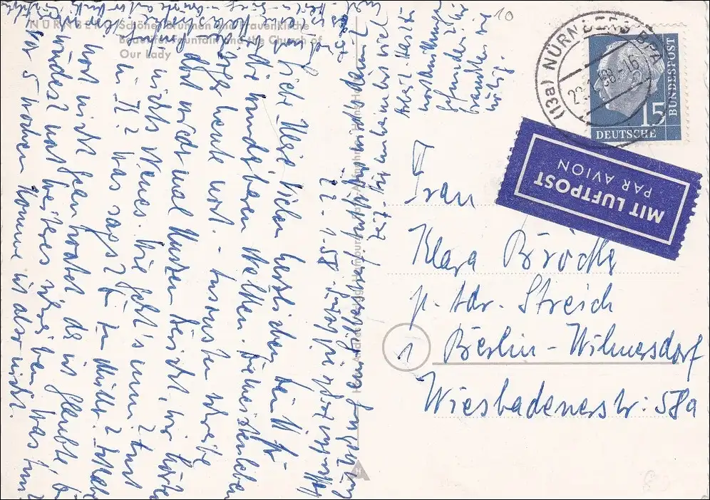 Carte de la vue comme poste aérien de Nuremberg à Berlin 1958
