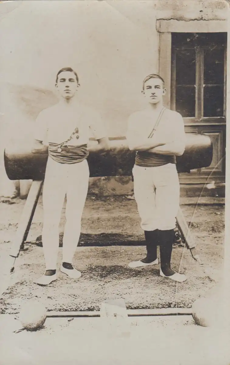 Carte de 2 tournois avec rainure et haltère, vers 1900