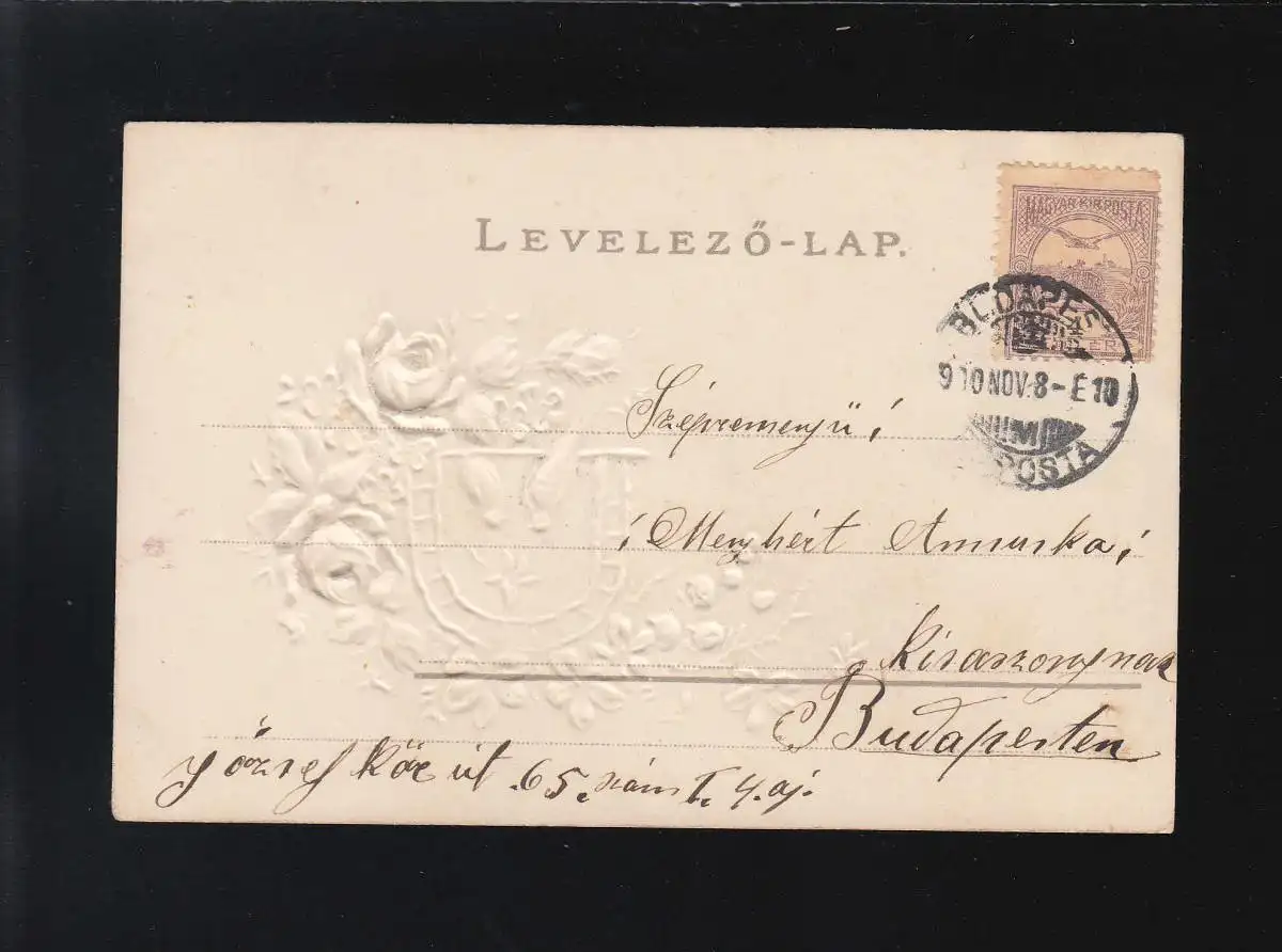 Arc en forme de fleurs colorées, 2 hirondelles au milieu de Budapest 8.11.1910