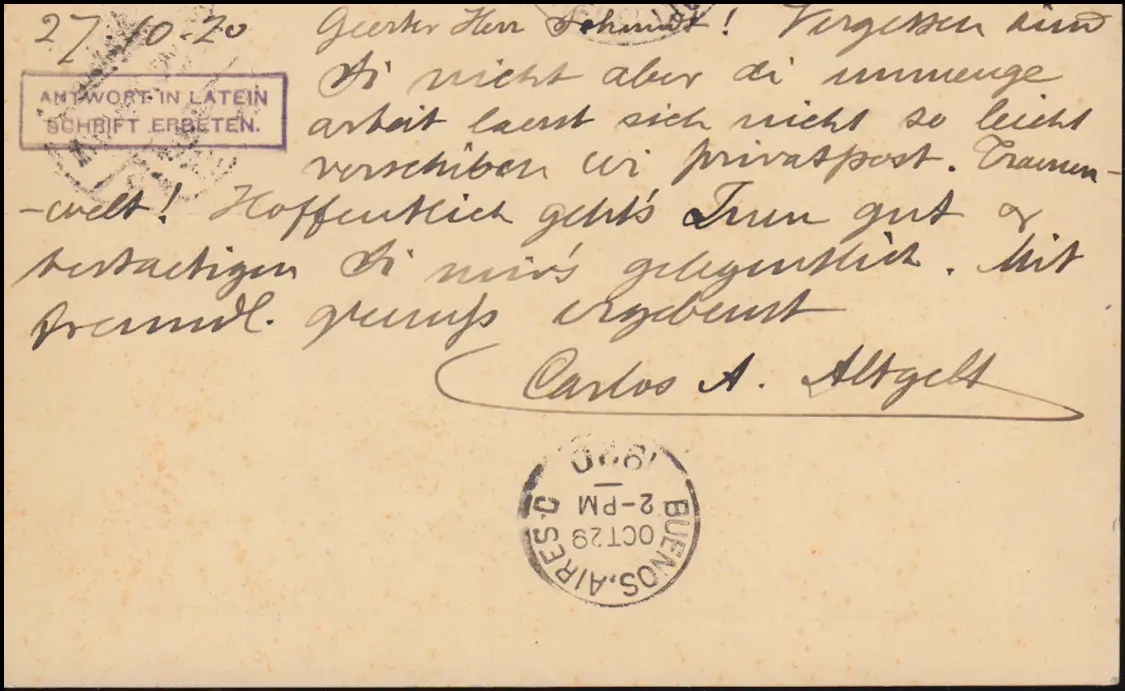 Argentine Carte postale complète 5 cent. BUENOS AIRES 29.10.1920 vers Valparaiso