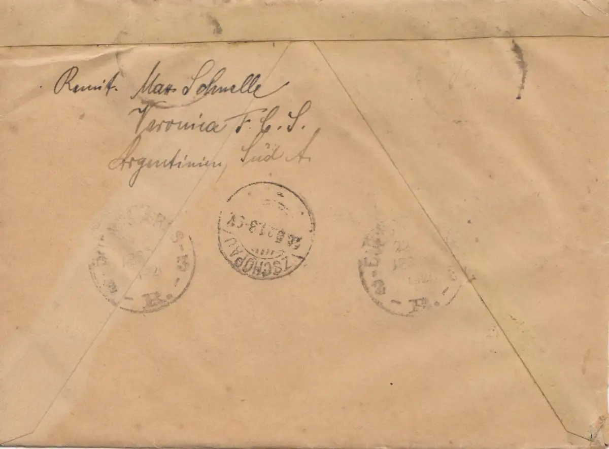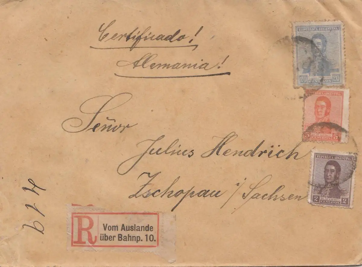 Argentine: 1921: lettre recommandée pour Tschopau,