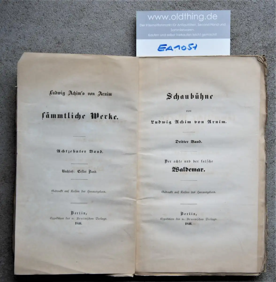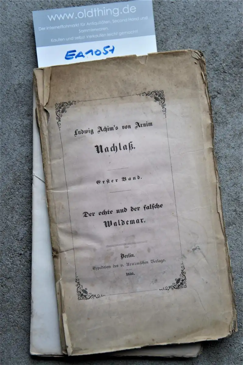 Ludwig Achims von Arnim Sämmtliche Werke, Achtzehnter Band; Nachlaß, Erster erster Band). EA WG 24.