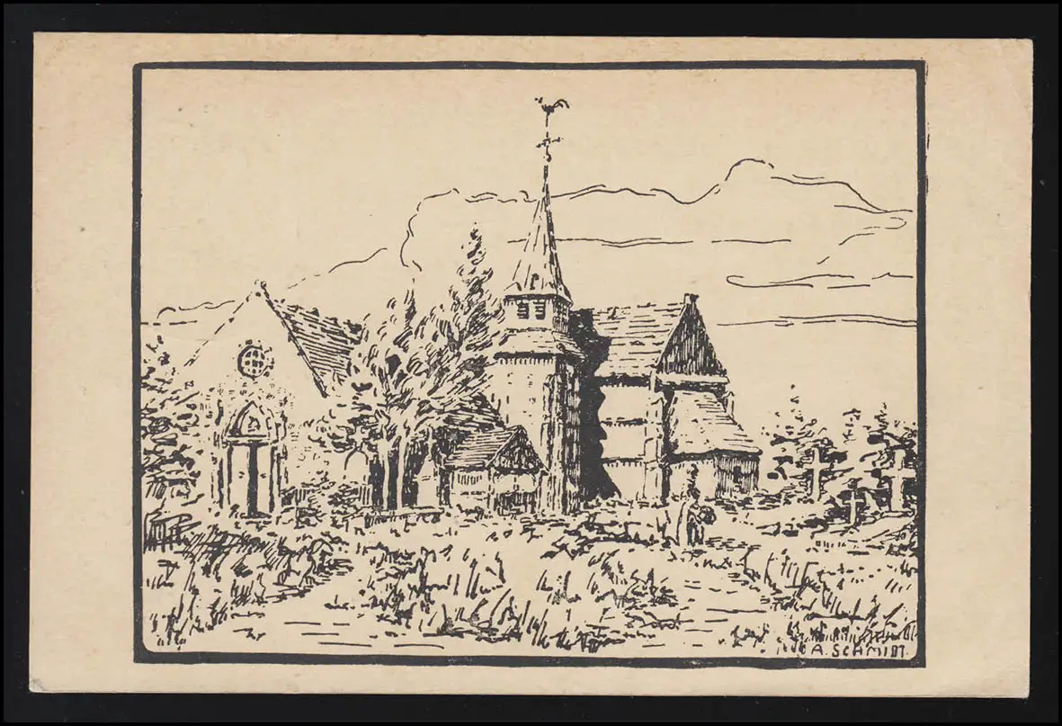 Artiste AK Dessin Église Paysage, A. Schmidt, Feldpost 26.6.16