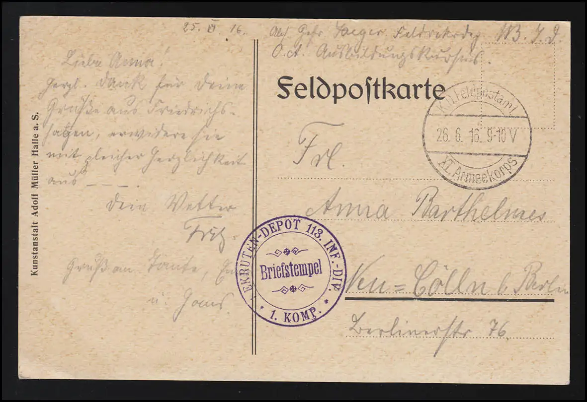 Carte du dépôt de recrue 113. Division 1 d'infanterie 1. Compagnie Vérification: original Référence produit: 00000000048108