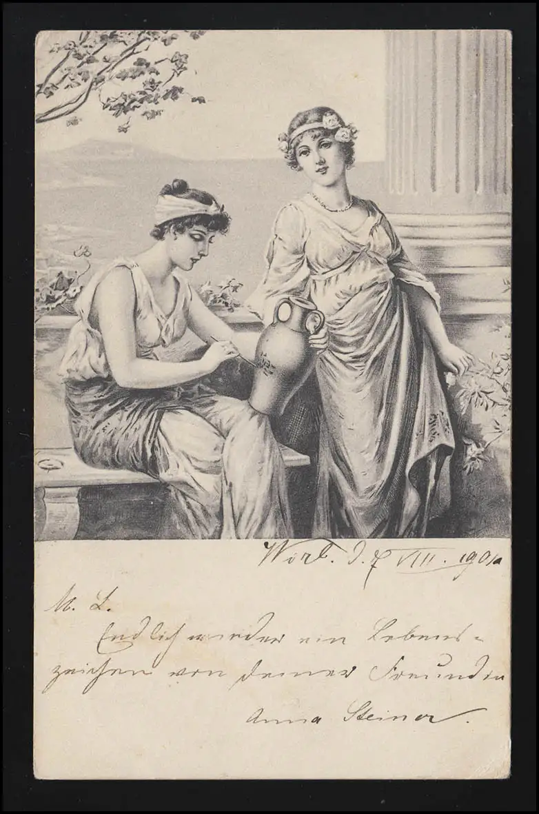 Artiste AK Dessin grec Femmes Amphore WORB/ GRANDS PHOTOS 8.8.204