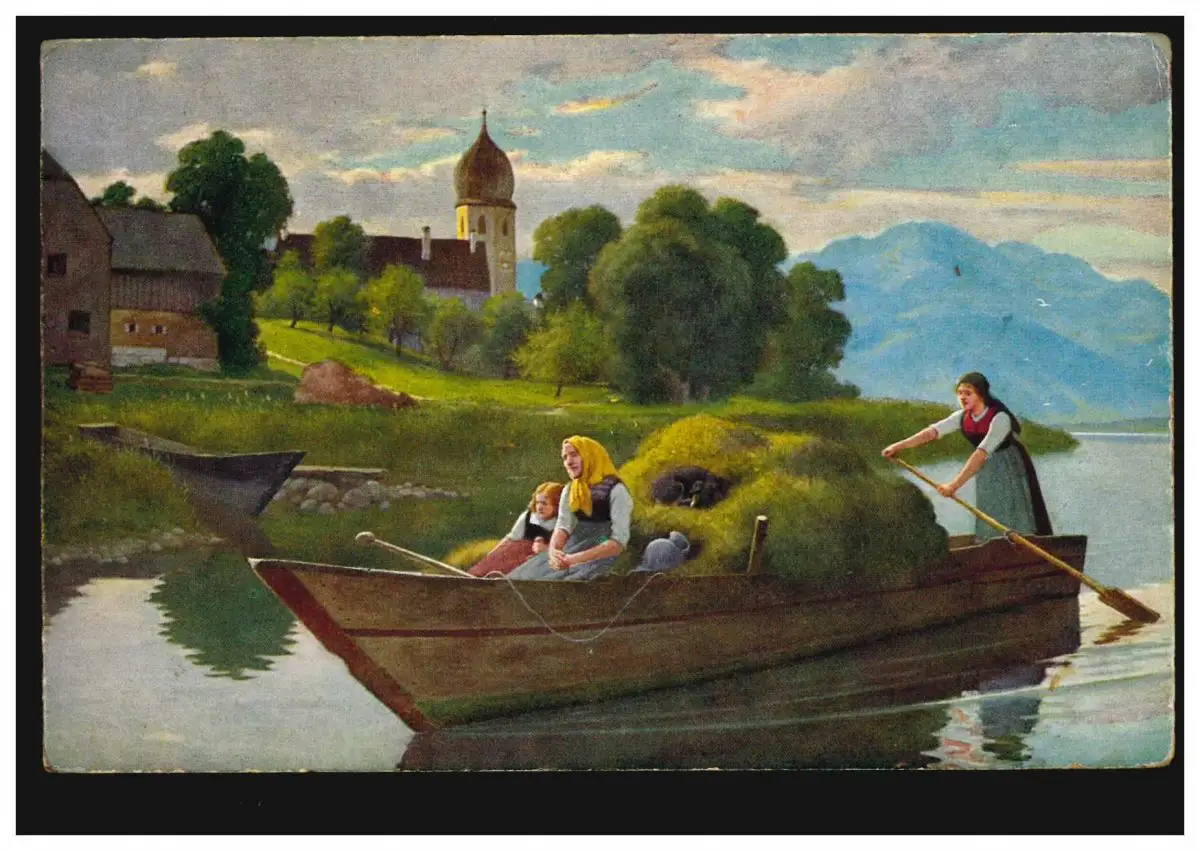 Artiste-AK Diffenbacher: Soirée de foin Transport par Kahn Kirchen (SIEG) 1926