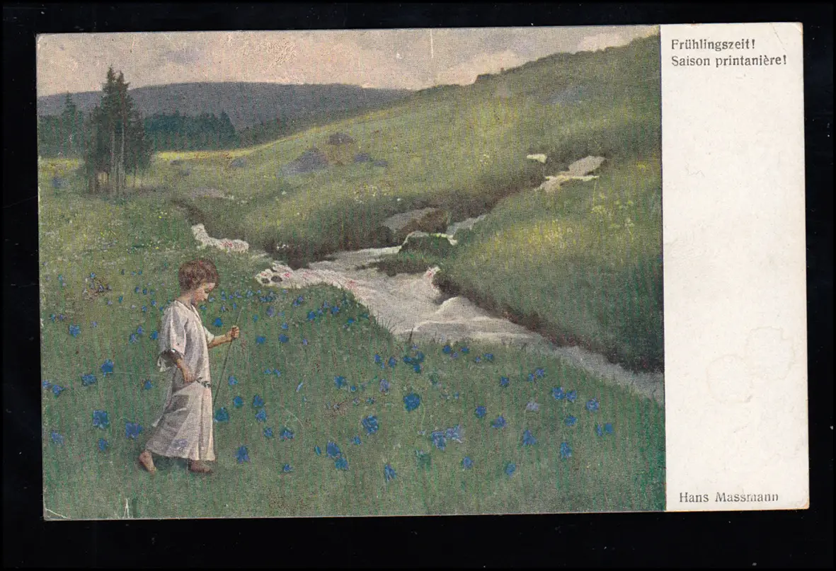 Artiste-AK Hans Massmann: Printemps - Jeune am Bergbach, inutilisé