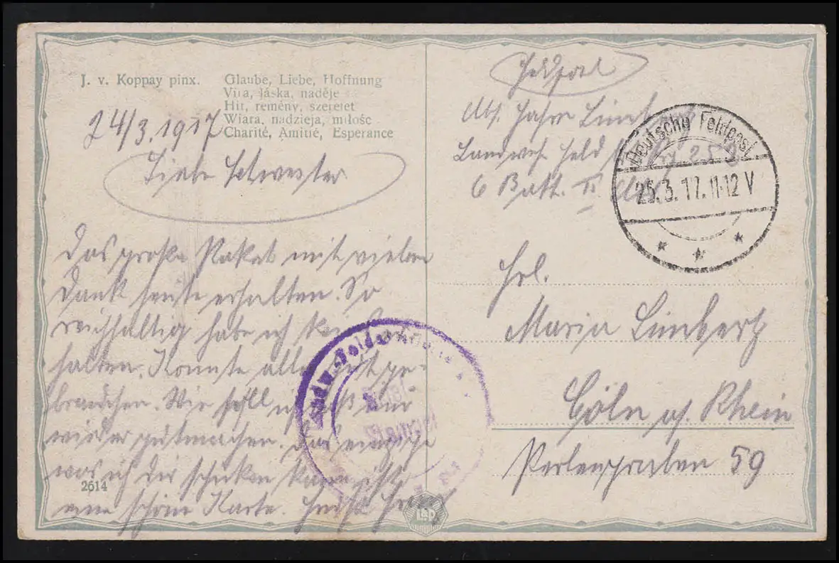 Artiste AK J. Koppay 3 femmes Ancre de la vie " Foi amour espoir " 25.3.17