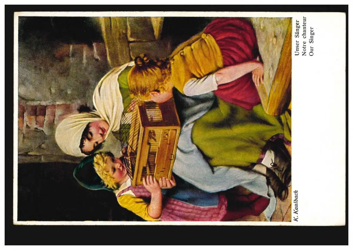 Artiste-AK Kaulbach: Notre chanteur - Ching oiseau dans la cage d'oisillons, inutilisé