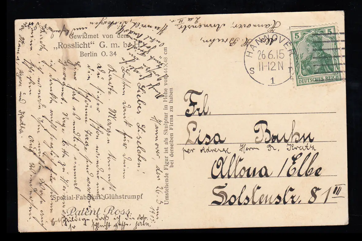 Artiste-AK Sculpture Au revoir de Rosslicht GmbH Patent Ross HANNOVER 26.6.1915