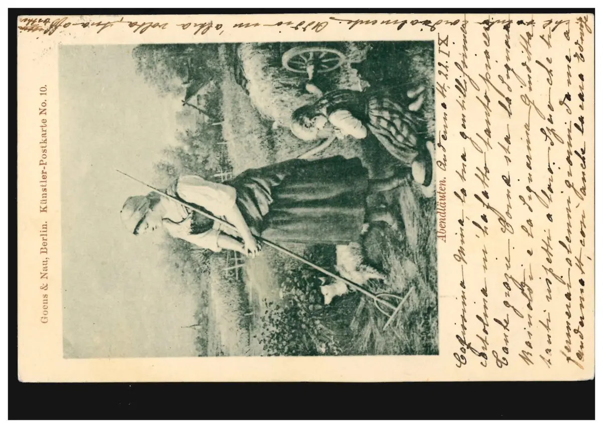Artiste-AK Sons du soir - paysanne avec enfant après le travail sur le terrain lors de la prière d'adieu