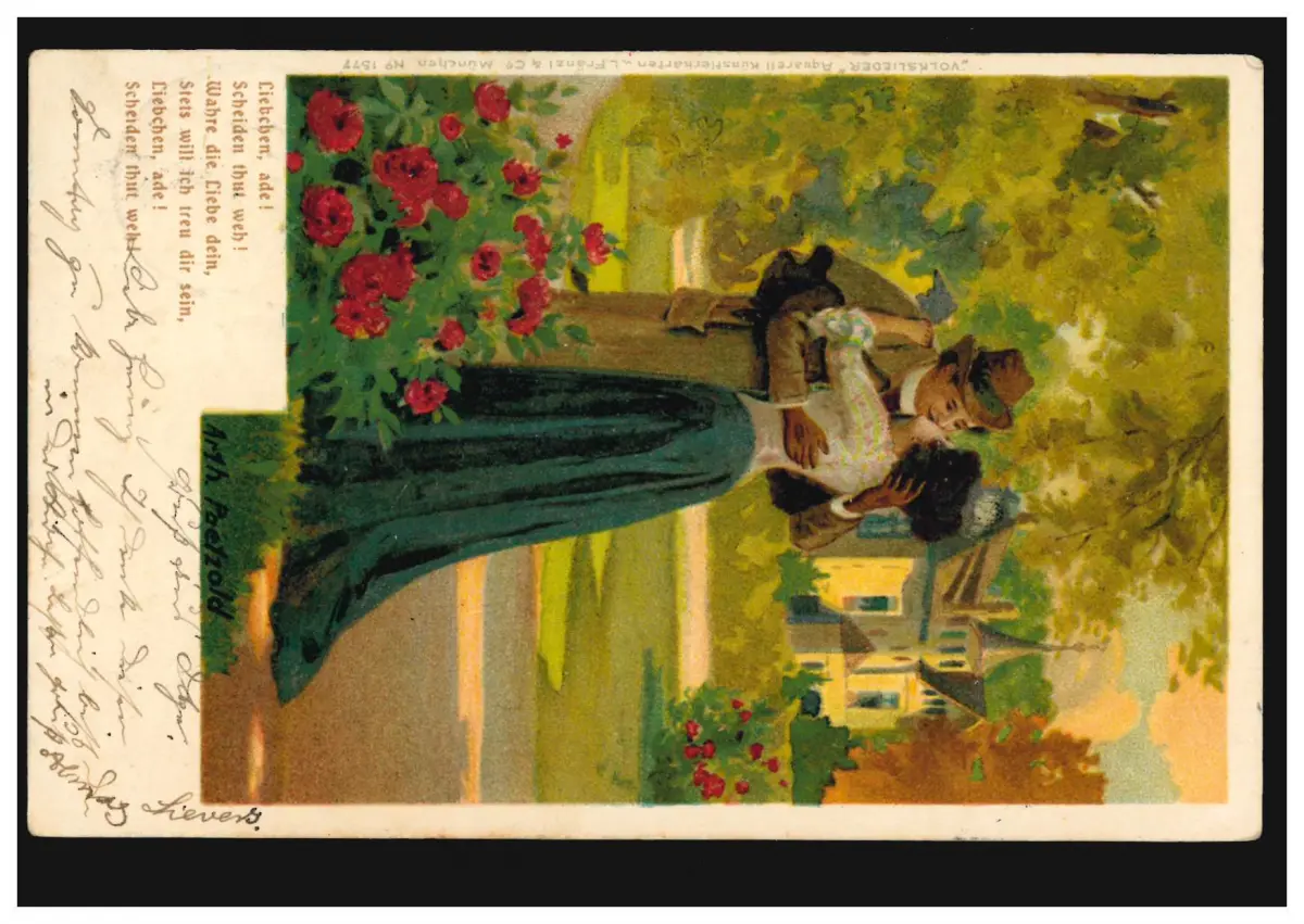 Artiste-AK Volkslieder Arthur Paetzold: Couple d'amour Le baiser, avec poème, 1908