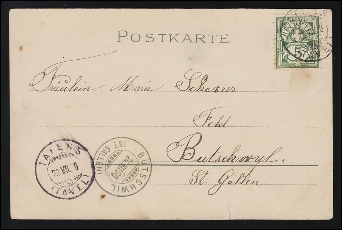 Artiste AK jeune femme habits de fête BÜTSCHWIL/ TAFERS 24.7.1900