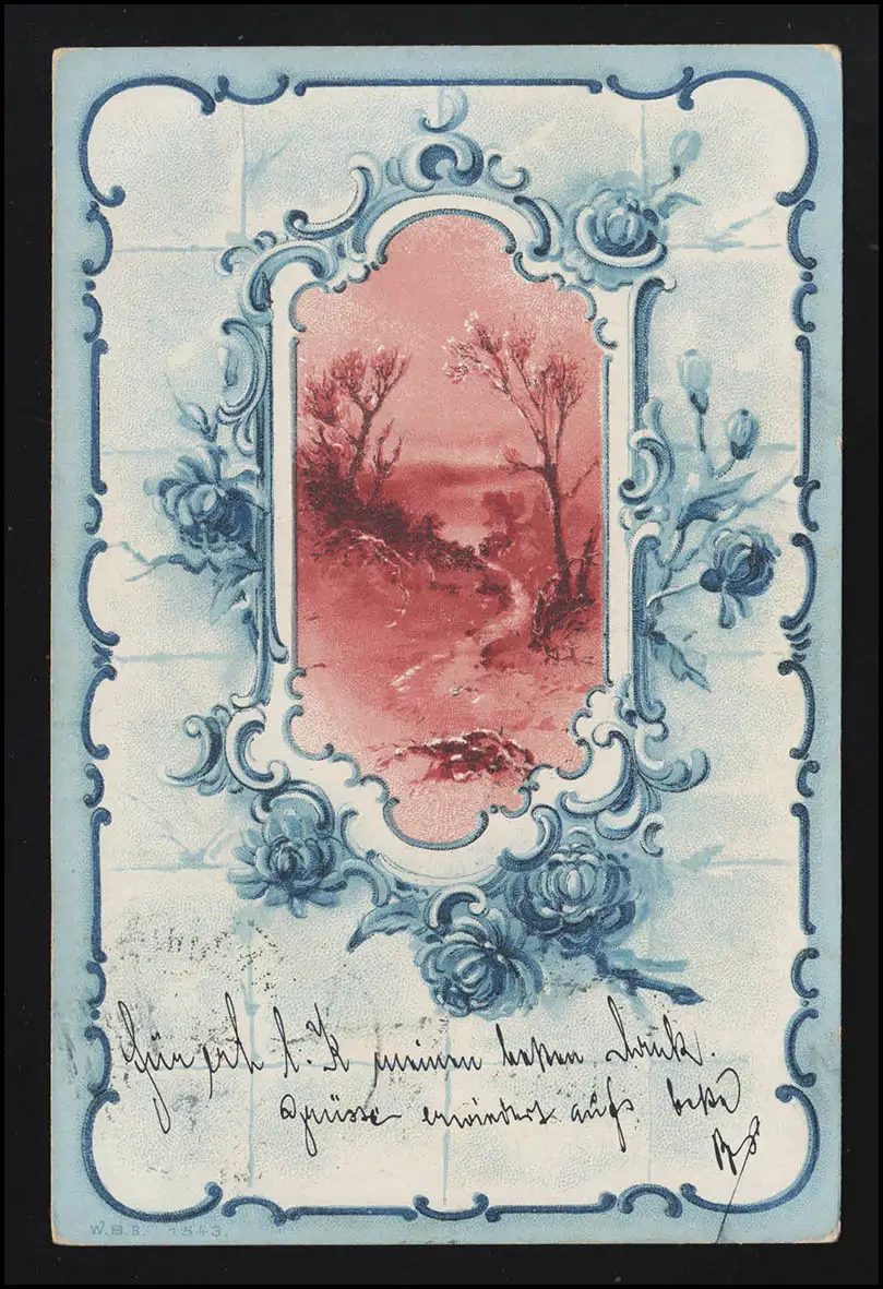 Artiste AK paysage encadré Fayence peinture /Delfter Bleu WITTKOWITZ Moravie