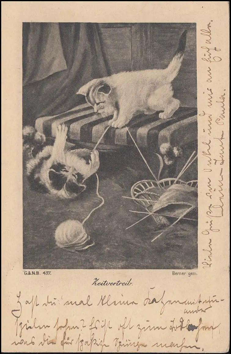Artiste-AK peinture Berner: passe-temps - Chats Künuel, Görlitz 22.2.22
