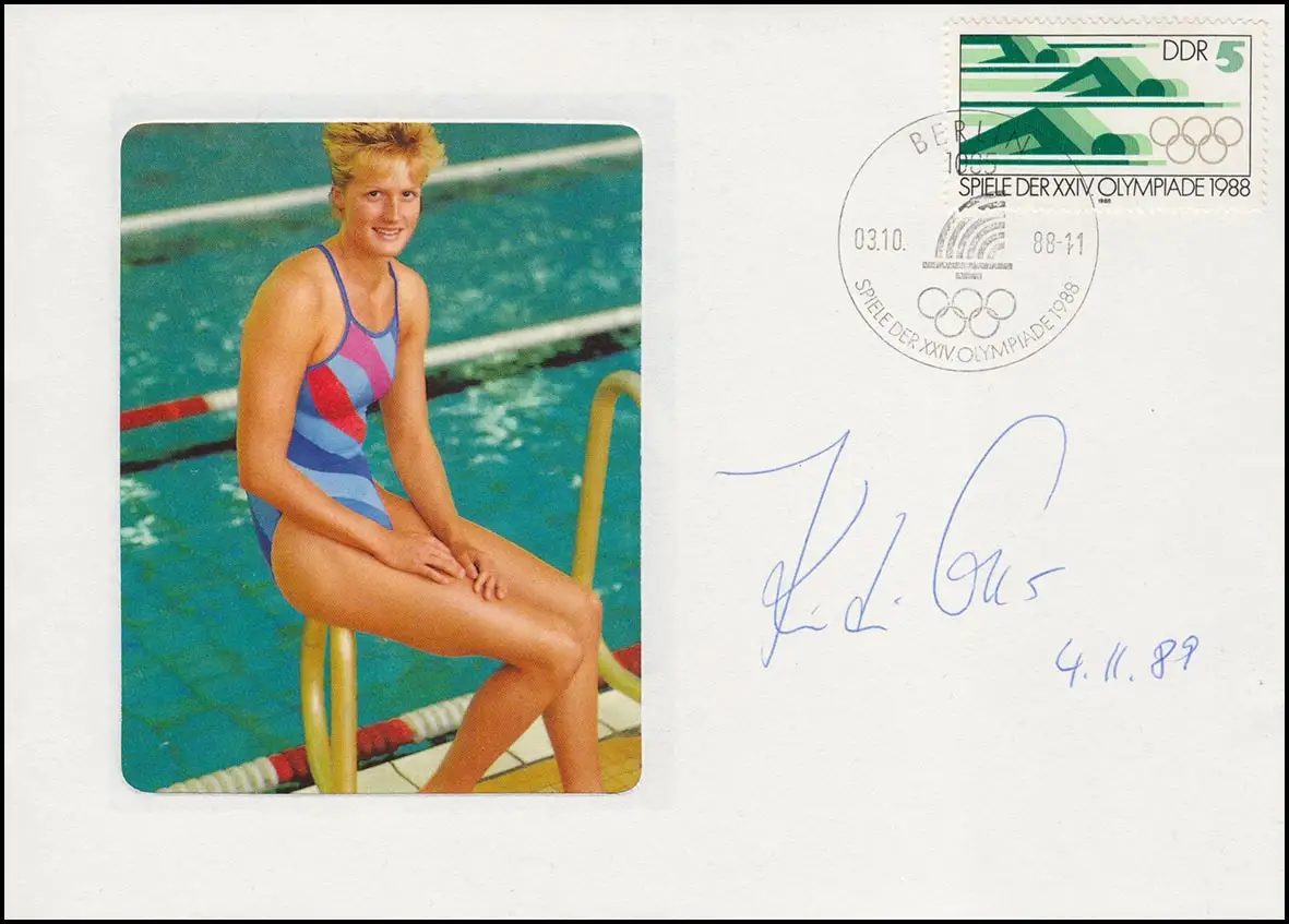 Autogramme Kristin Otto sur la lettre de bijoux SSt Berlin Olympia 3.10.88