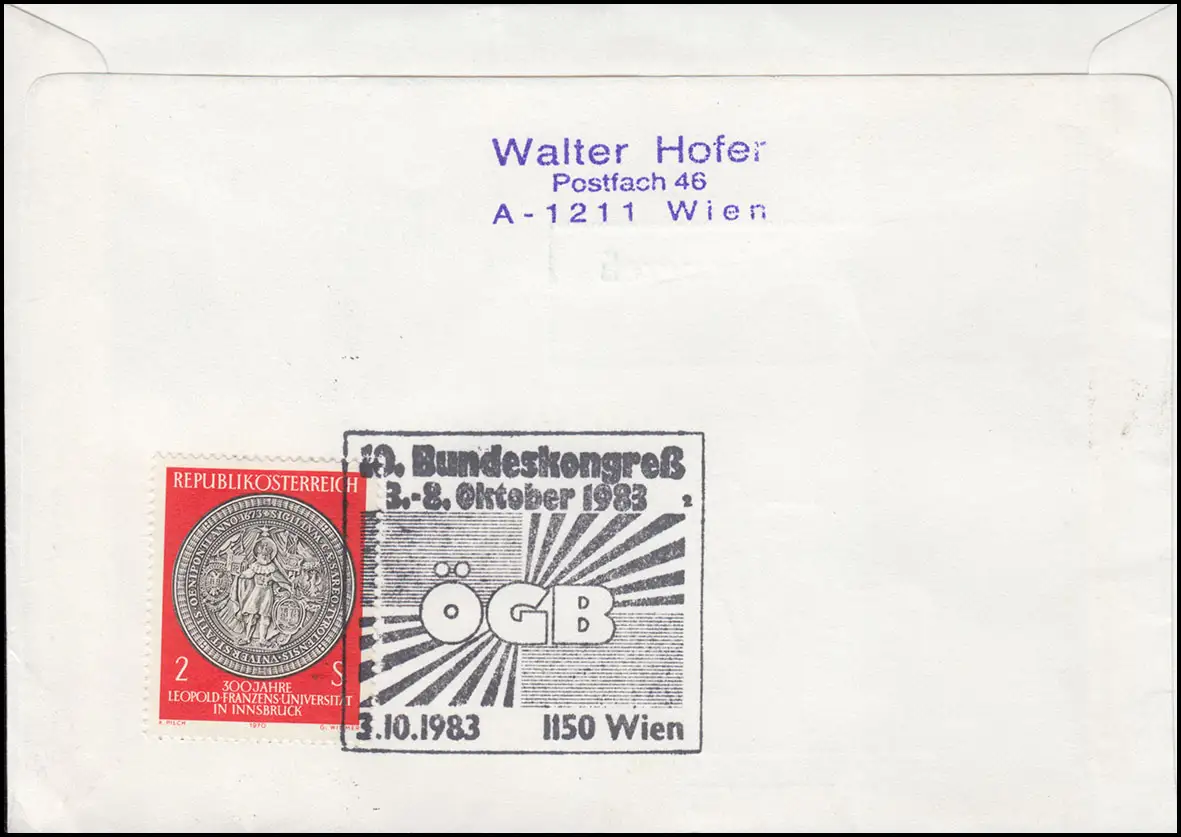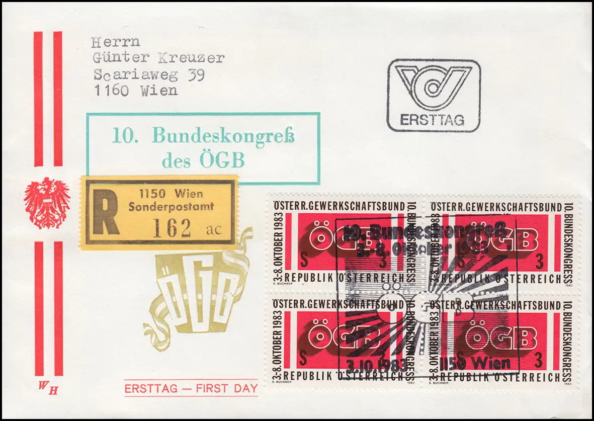 10e Congrès fédéral de la Confédération autrichienne des syndicats, Spéciaux-R-Zettel 1150 Vienne N° de catalogue: 1754 Examen: original Référence produit: 00000000027939