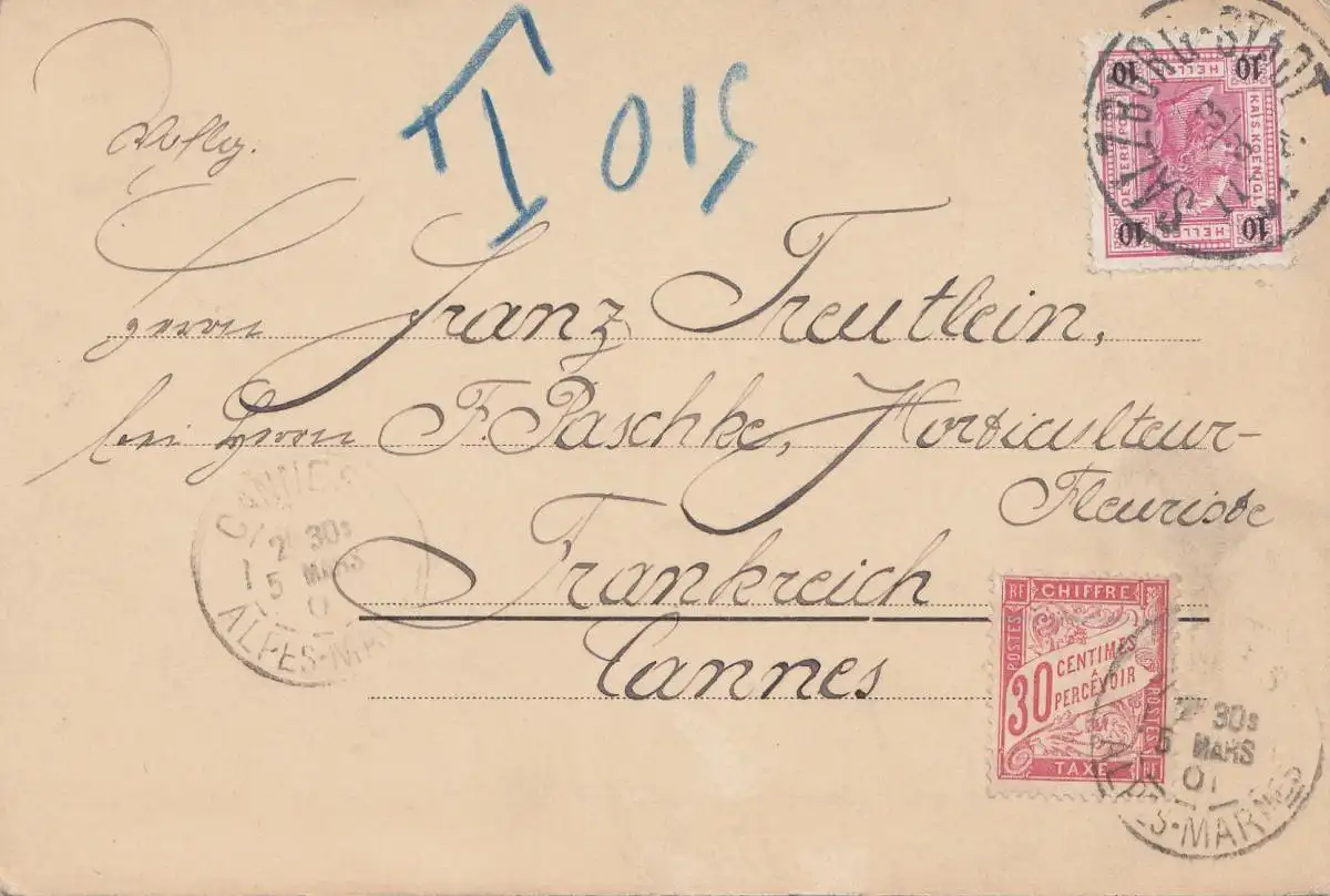 Autriche: 1901: Carte postale Salburg vers la France - Taxe