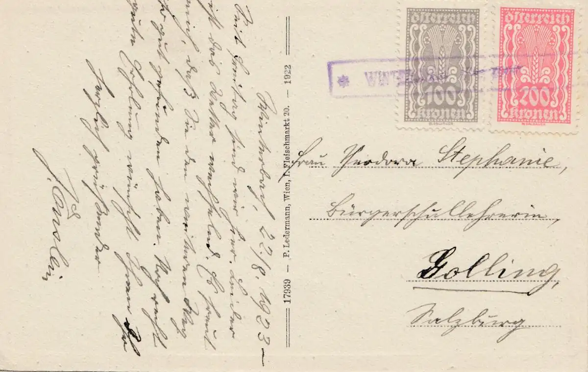 Autriche: 1923: AK Mariazell vers Solling/Salzburg