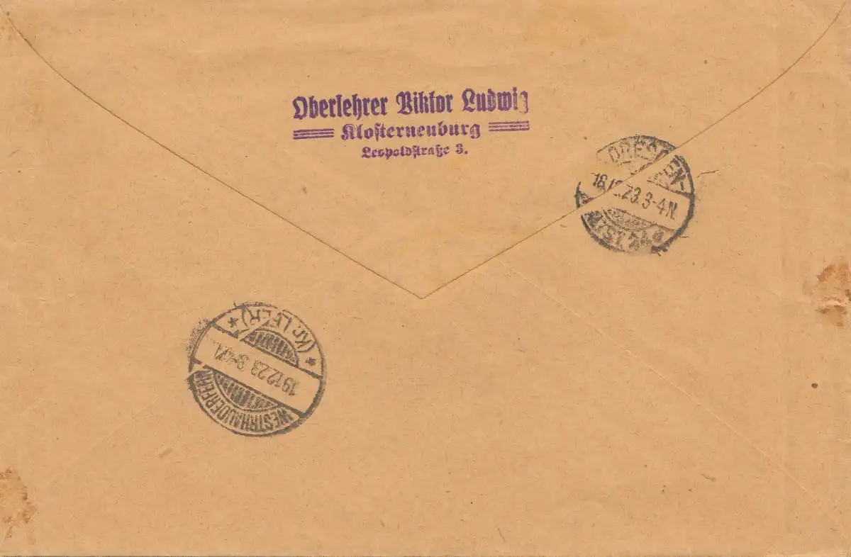 Autriche: 1923: Lettre recommandé Klosterneuburg vers Westrhauderfehn