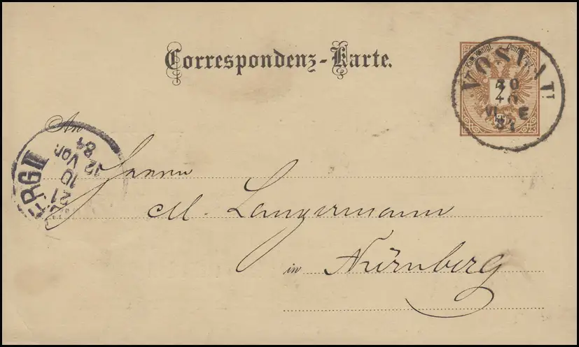 Autriche Carte postale P 43 Kammgarnfabrik VÖSLAU 20.10.84 n. Nuremberg 21.10.85