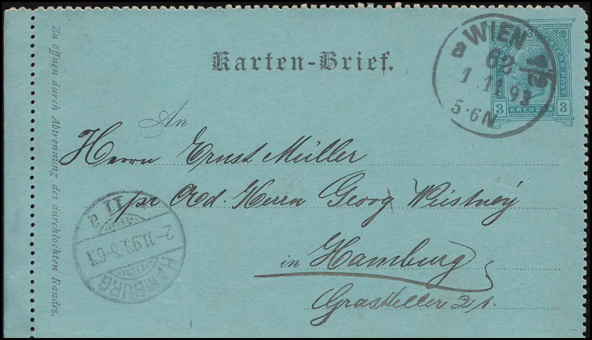 Autriche Cartes de lettre 15 de WIENNE 62 1.11.1893 vers HAMBURG 11a 2.11.93
