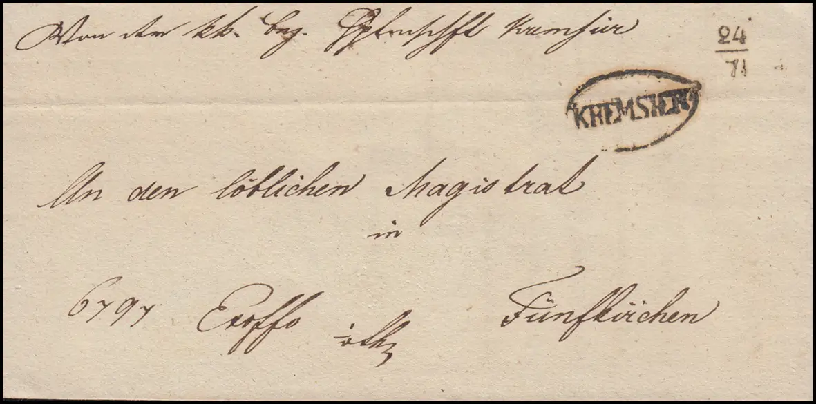 Autriche Plâtre Oval Tampon KREMSIER 24.7.1850 vers cinq églises