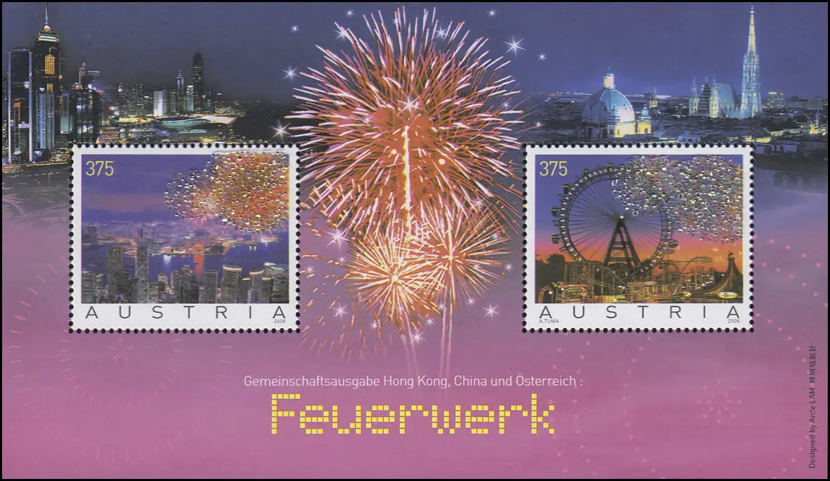 Autriche bloc 34 feux d'artifice avec des cristaux collés, **