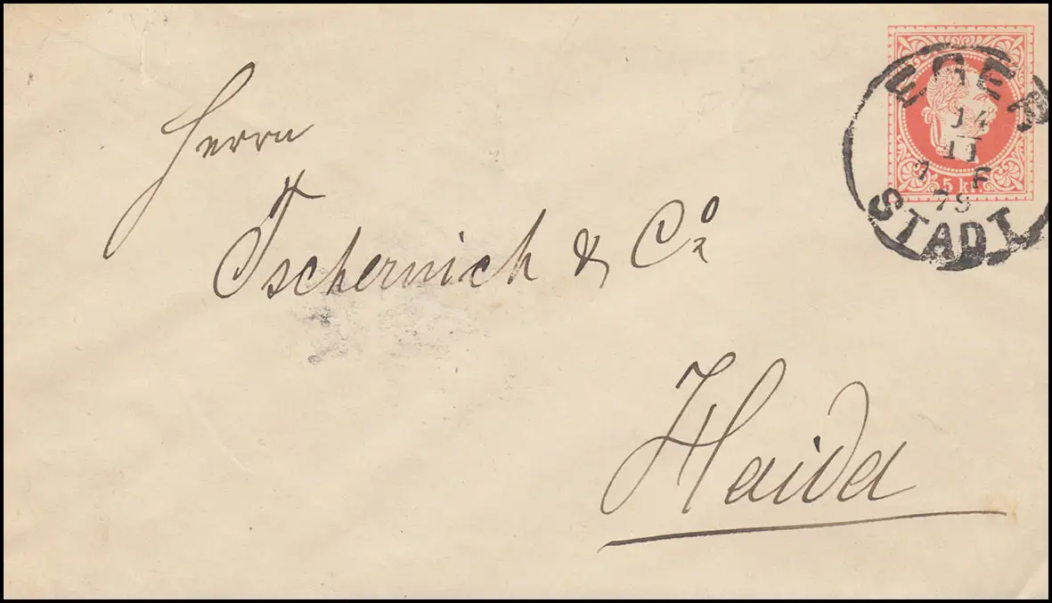 Autriche - couverture 60 I - de la VILLE EGER 14.11.1879 vers HAIDA 15.11.79