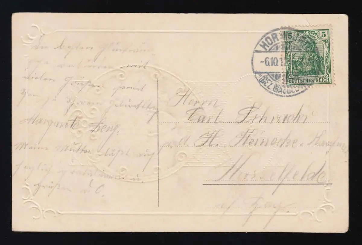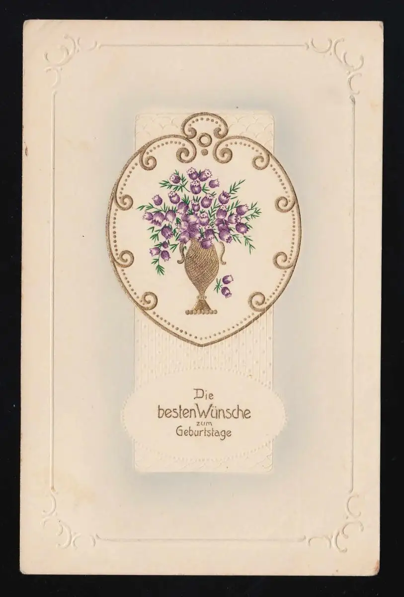 Autruche fleurs violettes vase doré Félicitations anniversaire, Hornburg 6.10.1912