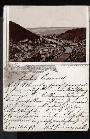 Bad Ems. Gruss aus Von Bäderlei - Gelaufen. 1893. Rückseite etwas berieben. (NPLZ 56130).