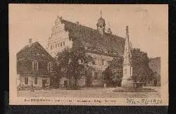Bad Schmiedeberg. Bez. Halle. Rathaus mit Kriegerdenkmal.