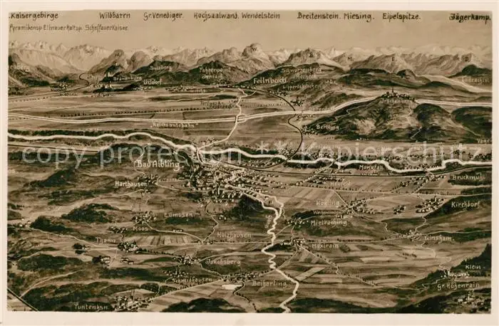Bad_Aibling Panoramakarte mit Kaisergebirge Bad_Aibling postalisch nicht gelaufen 1921-1965 Erhaltung siehe scans [WerneD78] WernPID7