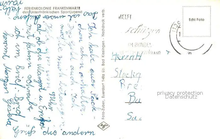 Bad_Kissingen Ferienkolonie Frankenwarte Bad_Kissingen postalisch gelaufen 1921-1965 Erhaltung siehe scans [WerneD78] WernPID7