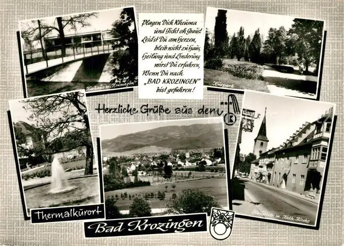Bad_Krozingen Kurhaus am Neumagen Kurpark Brunnen Panorama Kath Kirche Bad_Krozingen postalisch nicht gelaufen 1921-1965 Erhaltung siehe scans [WerneD78] WernPID7