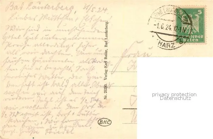 Bad_Lauterberg wiesenbeker Teich Bad_Lauterberg postalisch gelaufen 1924 Erhaltung siehe scans [LiesaD40] LiesID40