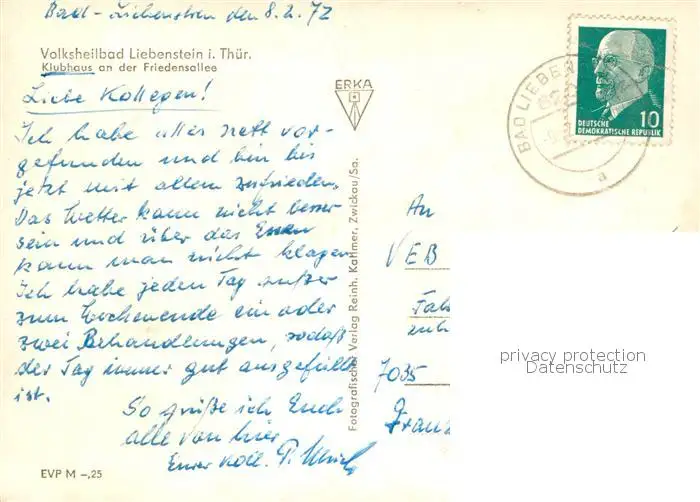 Bad_Liebenstein Klubhaus an der Friedensallee Bad_Liebenstein postalisch gelaufen 1972 Erhaltung siehe scans [WerneD78] WernPID7
