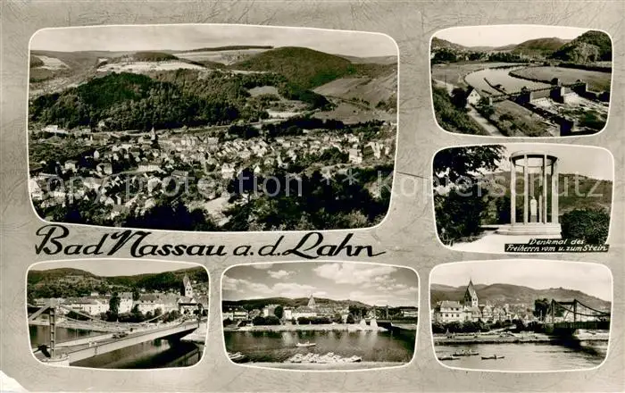 Bad_Nassau Panorama Bruecke Stauwehr Denkmal des Freiherrn vom Stein Bad_Nassau postalisch nicht gelaufen 1921-1965 Erhaltung siehe scans [WerneD78] WernPID7