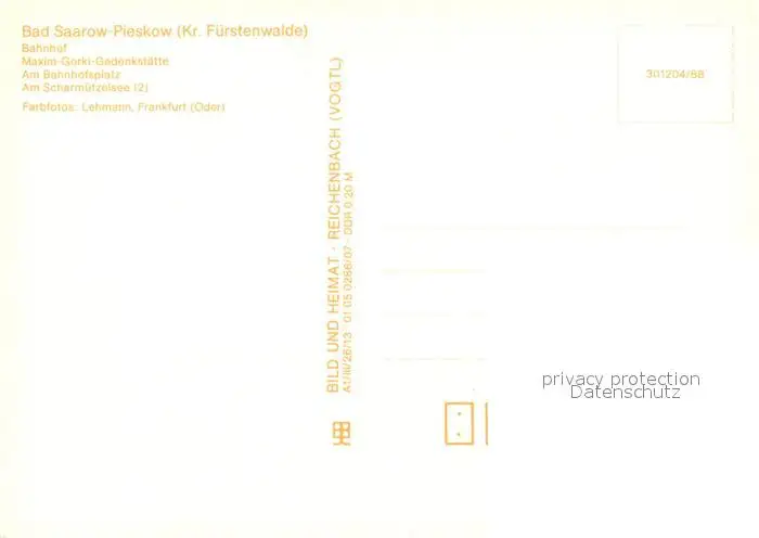 Bad_Saarow-Pieskow Bahnhof Maxim Gorke Gedenkstaette Bahnhofsplatz Scharmuetzelsee Bad_Saarow-Pieskow postalisch nicht gelaufen 1988 Erhaltung siehe scans [FriedD77] Frierer