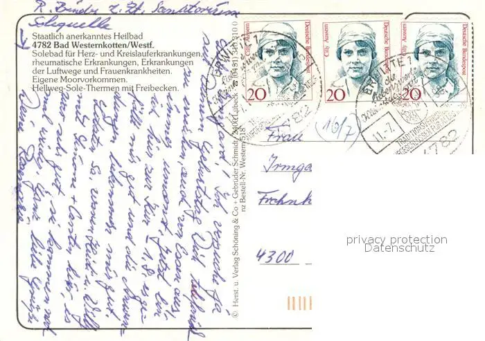 Bad_Westernkotten Heilbad Sole-Moorbad Park Springbrunnen Freibad Kurhaeuser Saline Bad_Westernkotten postalisch gelaufen 1990 Erhaltung siehe scans [FriedD77] Frierer
