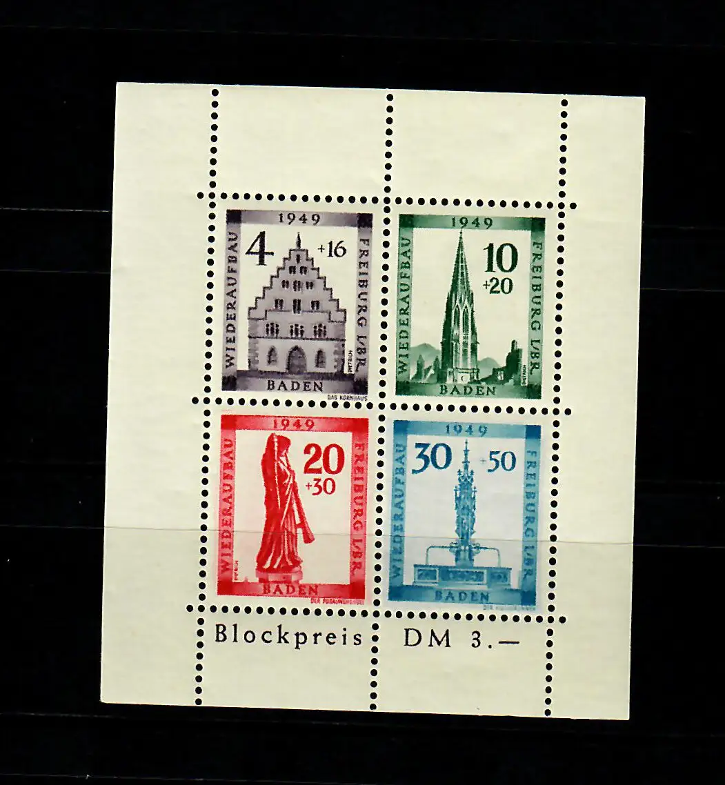 Baden 1949: Min. Block, 1 A I, post-freeich, **