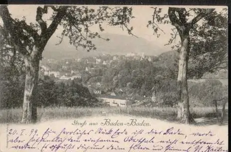 Baden Baden. Gruss aus - Gelaufen 1899. (NPLZ 76530).
