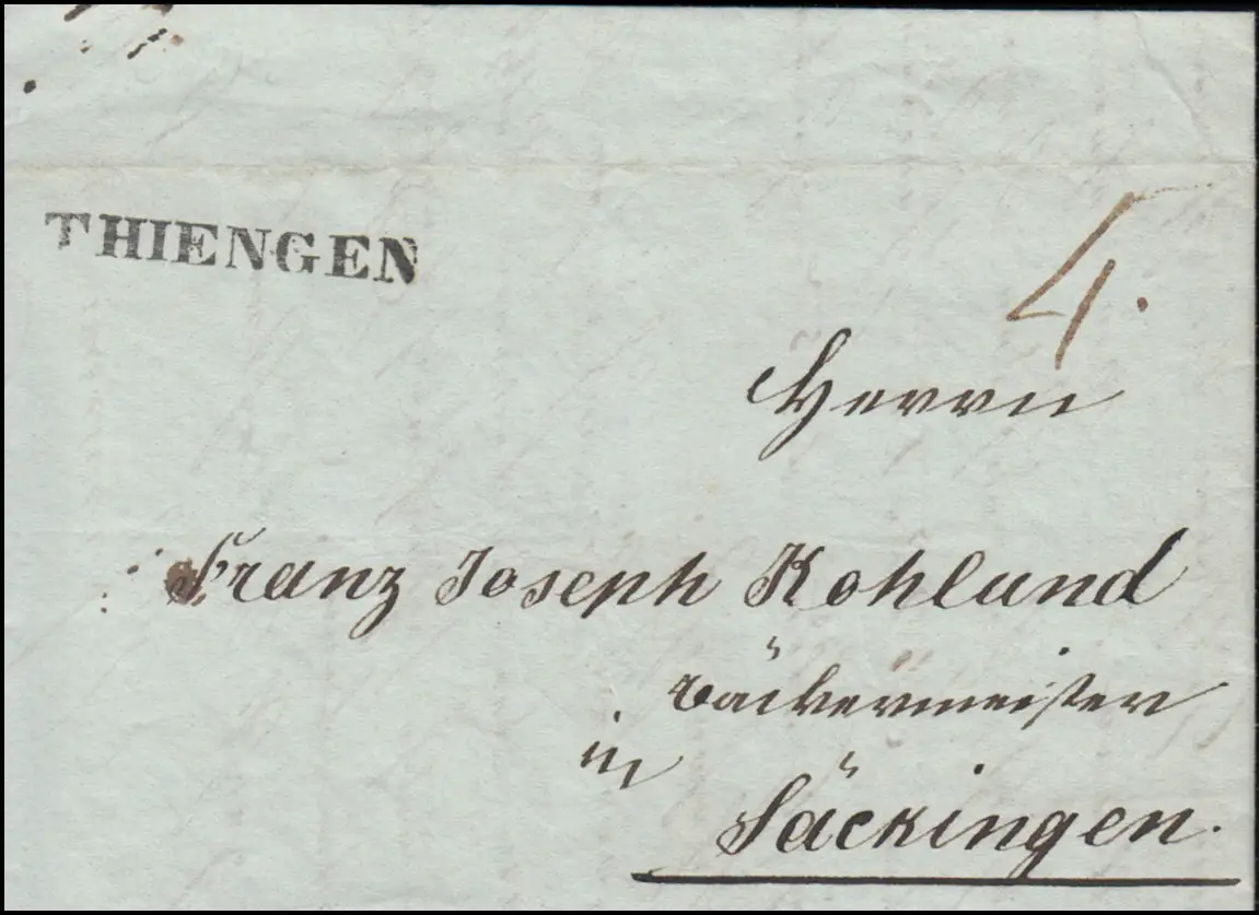 Baden Blückschlifter einzeiger THIENGEN selon Säckingen, écrit 12.12.1840