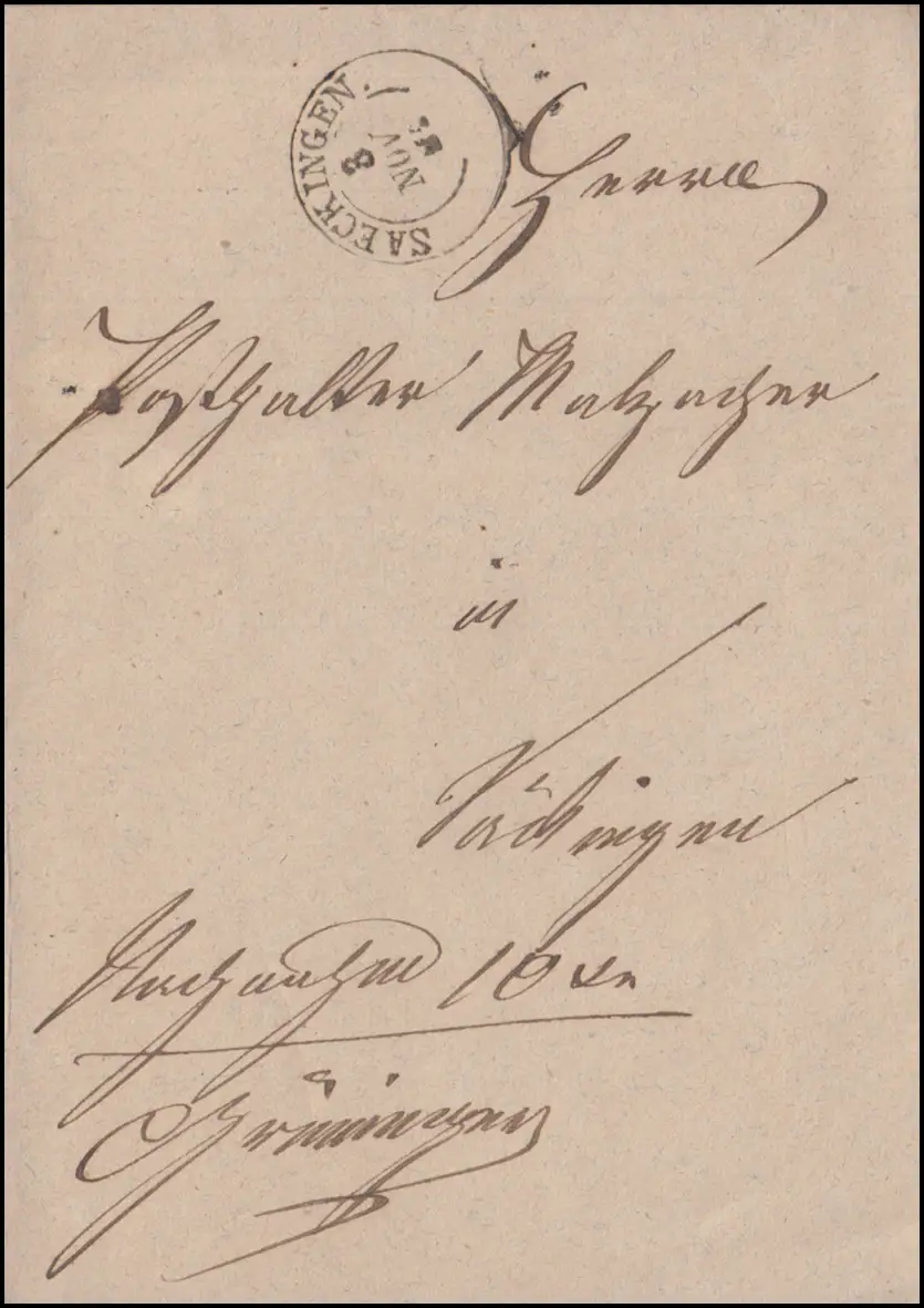Baden Blückbrief Zweikreis SAECKINGEN 3.11.1862 au Posthalter Maltacher
