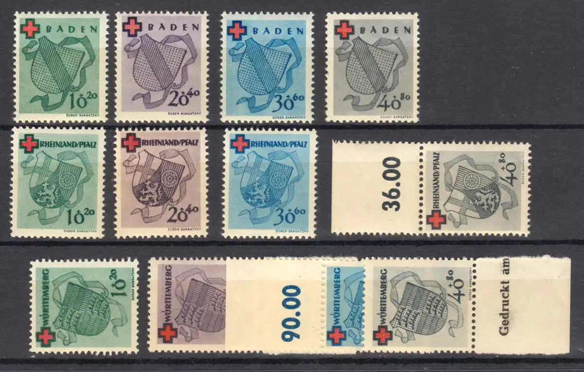 Marques spéciales Croix-Rouge 1949 von Baden 42-45A / Rhénanie-Palatinat 42-4A/Württemberg 40-43A Numéro de catalogue: 42ff Examen: original Référence produit: 00000000004936