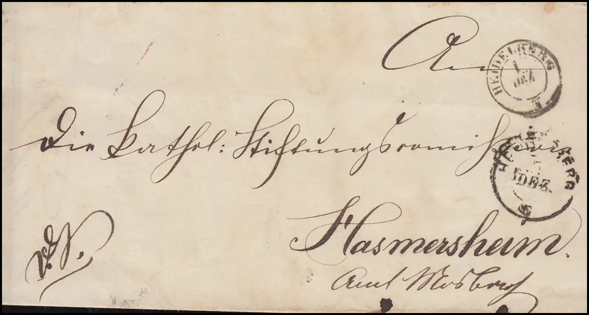 Baden Vorphilatelie Sous-titre HEIDELBERG 1.12. vers Hasmersheim