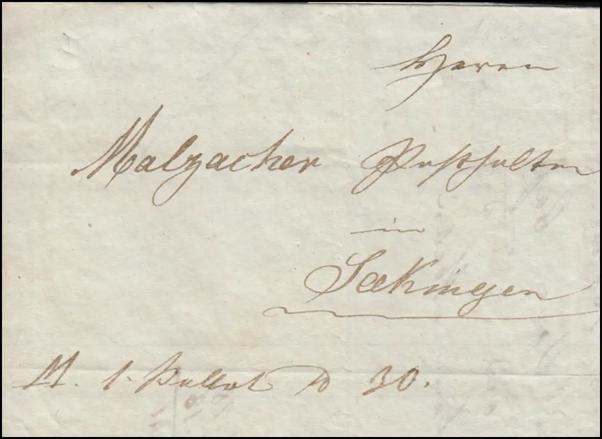 Baden Vorphilatelie facture A. Braun 1833 au porte-poste maltacher Seckingen