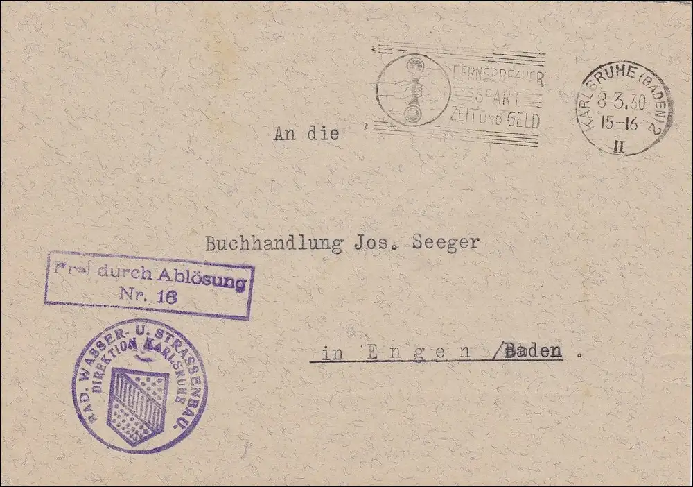 Construction de voies et d'eau Badische Direction Karlsruhe 1930 après Engen