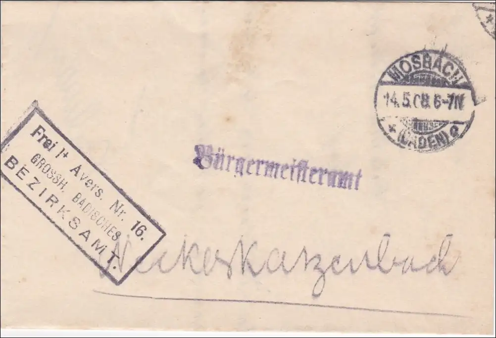 Badisches Verwaltung Mosbach an Moratamt Neckargerach 1908