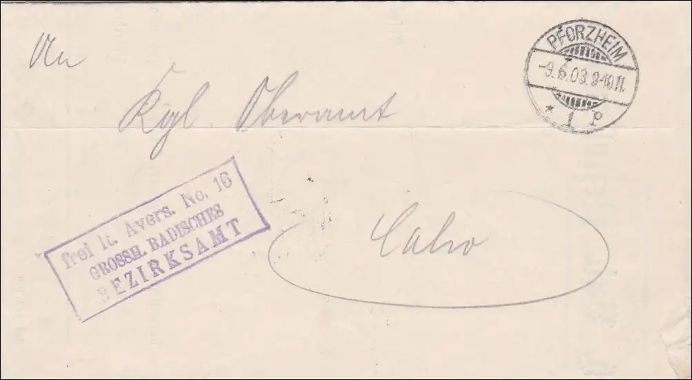 Badisches Zoomamt Pforzheim 1903 vers Lahr
